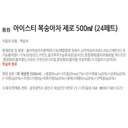 보성홍차 아이스티제로(500ml_복숭아 500g/EA) 이미지