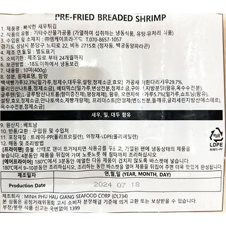 유탕처리새우튀김(반조리_40g*10입 400g/EA)
