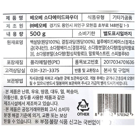 베오베 소다에이드파우더(500g/EA)
