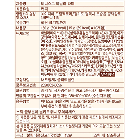 이디야 바닐라라떼(15g*10T 150g/EA)