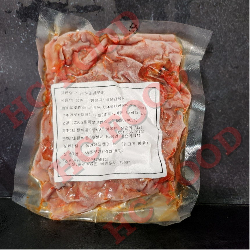 국내산 닭발 품귀로 당분간 수입으로 생산됩니다.