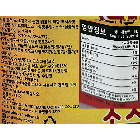 ★초특가★ 쉐프스초이스 스위트칠리소스(5L_ 5Kg/EA)