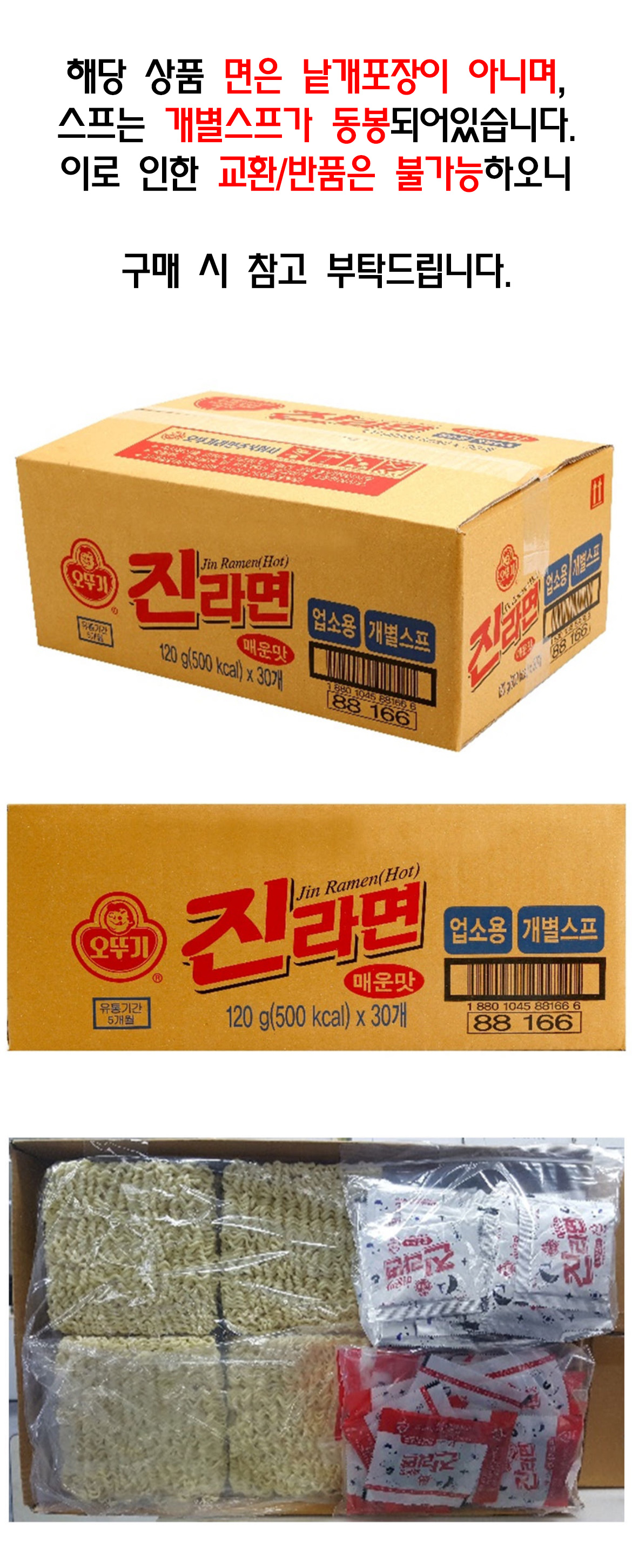 오뚜기 진라면 매운맛 120g 30입 개별스프 업소용 벌크