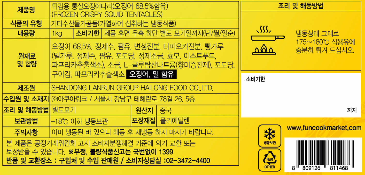 아쿠아링크 오징어다리가라아게(50조각내외 1Kg/EA)