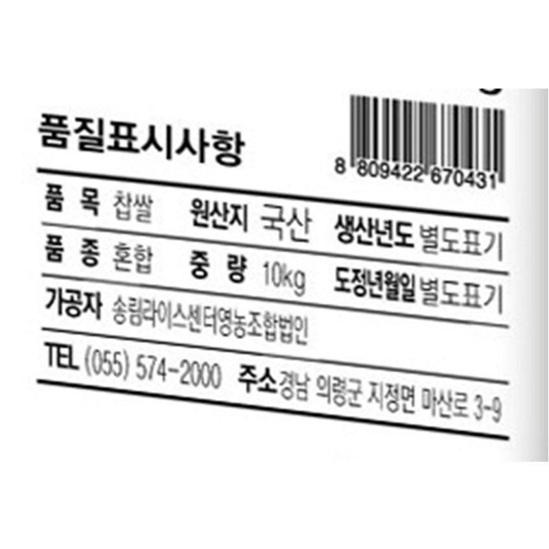 송림라이스센터 찹쌀(10Kg/EA) 이미지