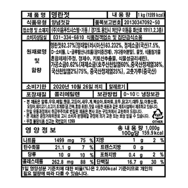 본 제품은 제품입고일별 유통기한 또는 품질유지기한이 상이하므로, 필요시 고객센터로 문의하여 주십시오. 제조일로부터 60까지