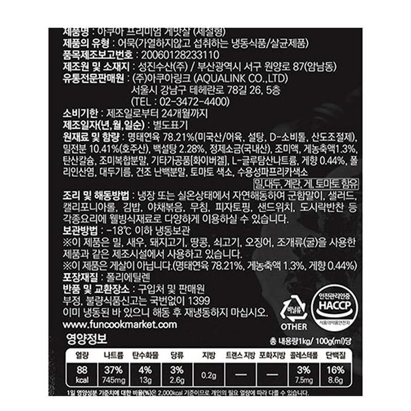 아쿠아링크 프리미엄게맛살(세절형 1Kg/EA)