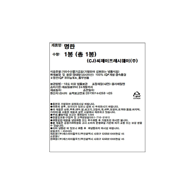 에스아이홀푸드 명란(IQF 800g/EA)