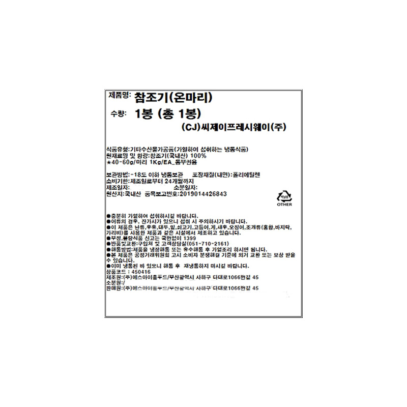 에스아이홀푸드 참조기(40-60g/마리 1Kg/EA)