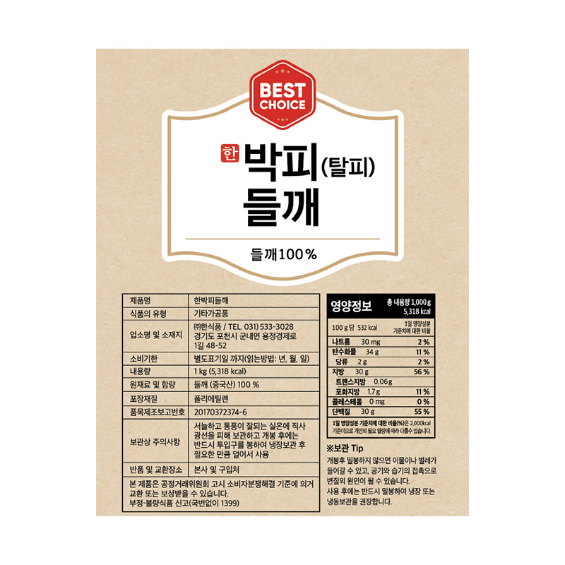 한식품 탈피들깨가루(CJ프레시웨이전용 1Kg/EA) 이미지