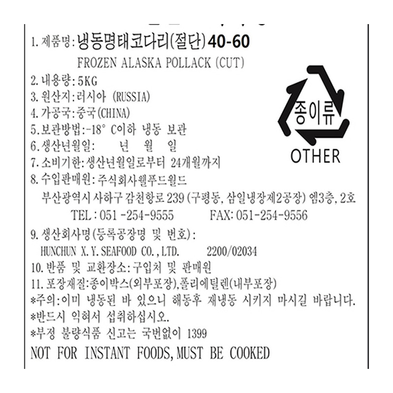 코다리(깔끄미_40~60g/토막 5Kg/BOX)