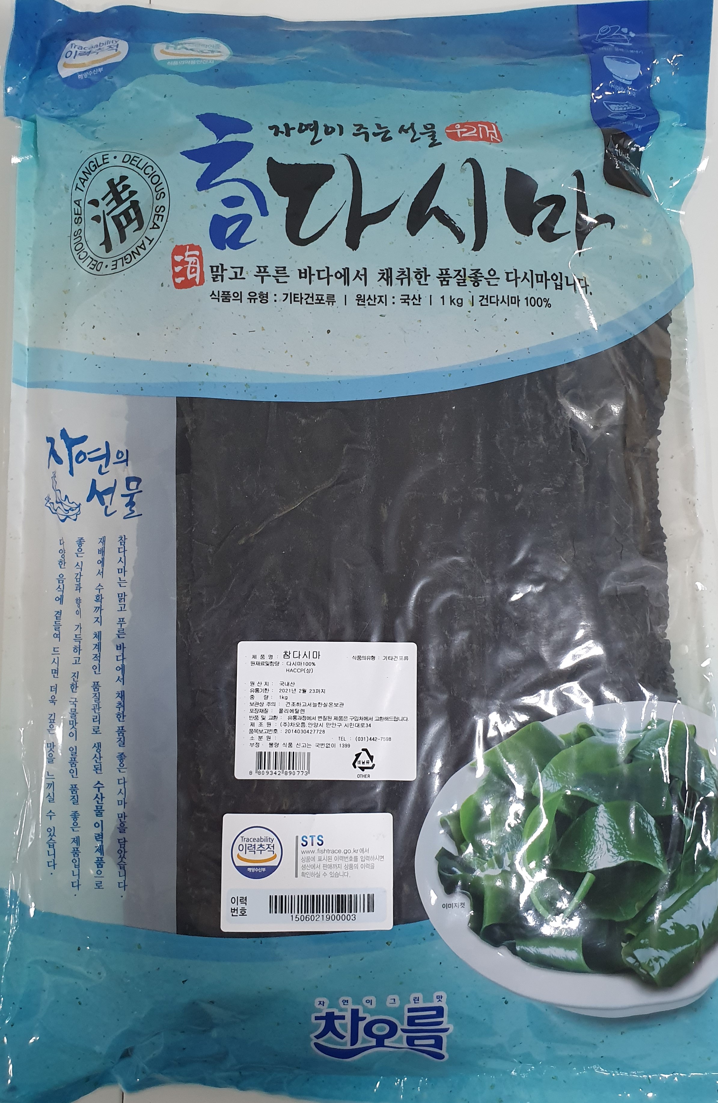 최상품의 두껍고 검은 광택의 완도산 다시마를 위생적으로 포장한 HACCP 제품 입니다.