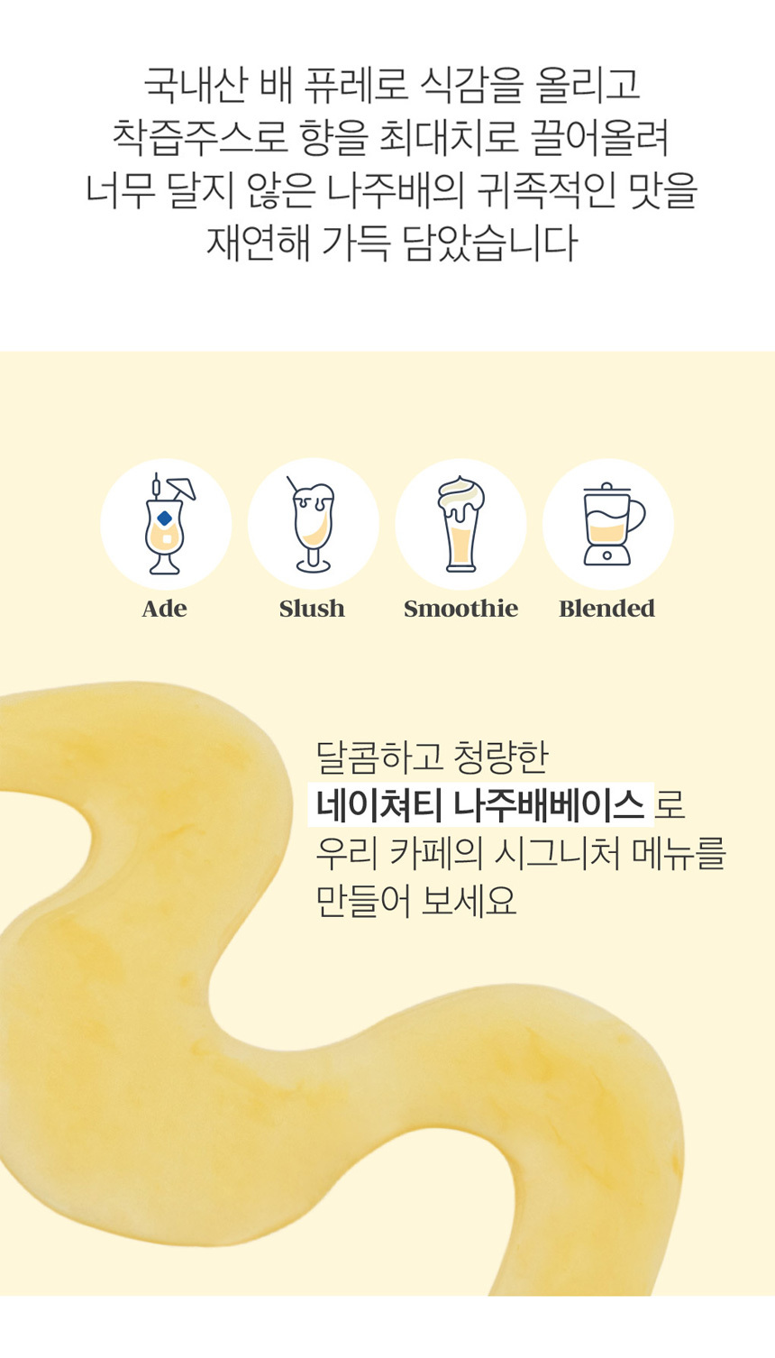 국내산 배 퓨레로 식감은 UP!!! 착즙 쥬스로 향을 극대화 시켰어요~