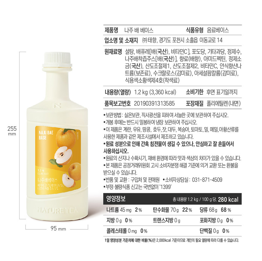 네이쳐티 나주 배 베이스 1.2kg 시럽 농축액
