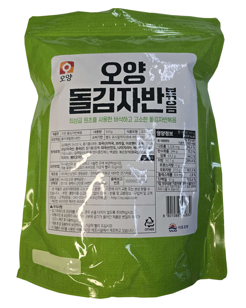 오양 돌김자반볶음은 신선한 돌김을 바삭하게 볶아 감칠맛을 살린 제품입니다. 간편하게 밥반찬으로 즐길 수 있으며, 각종 요리에 활용하기에도 좋습니다.