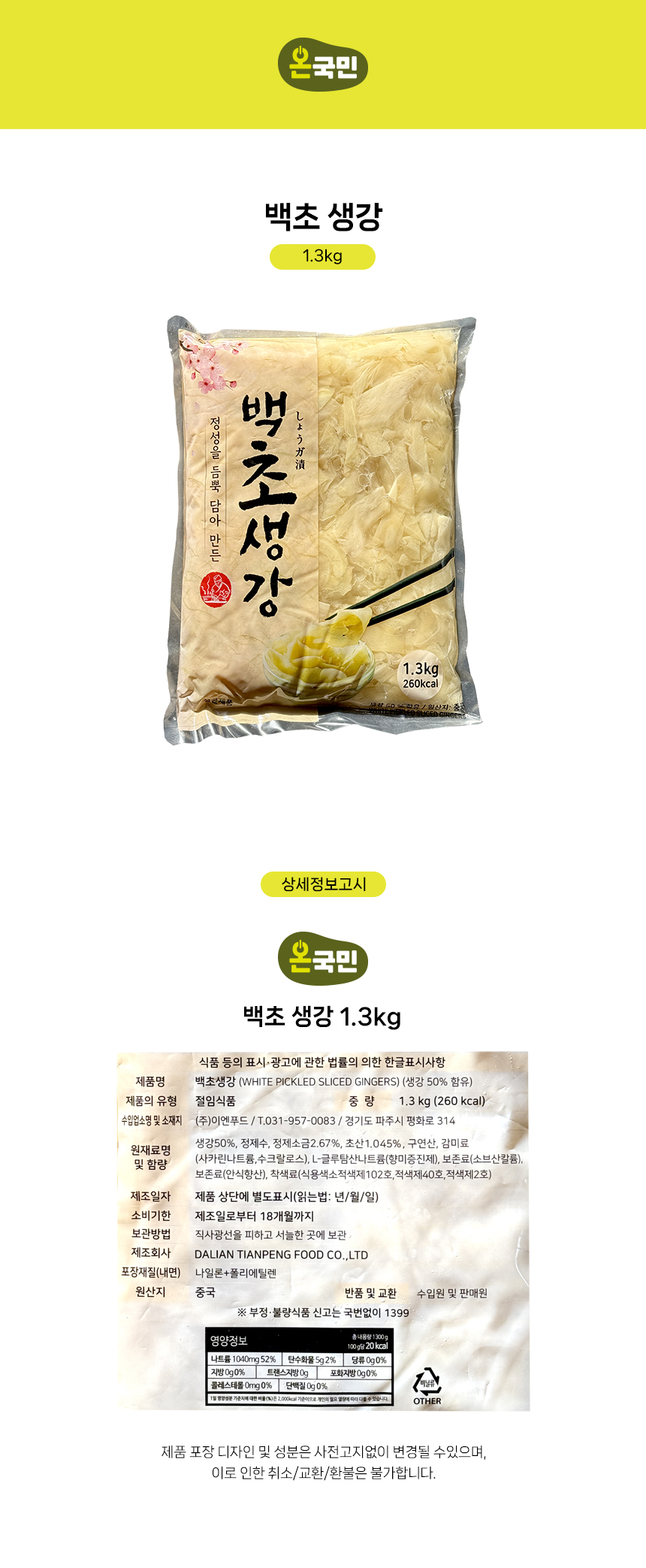 이엔 백초생강 1.3kg
