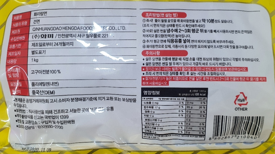 화미랑면 납작당면을 업소나 식당 뿐만아니라,