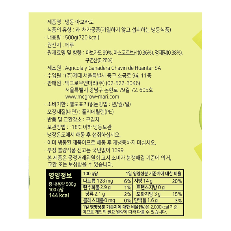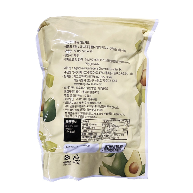 맥그로우앤마리 냉동아보카도(다이스 500g/EA)