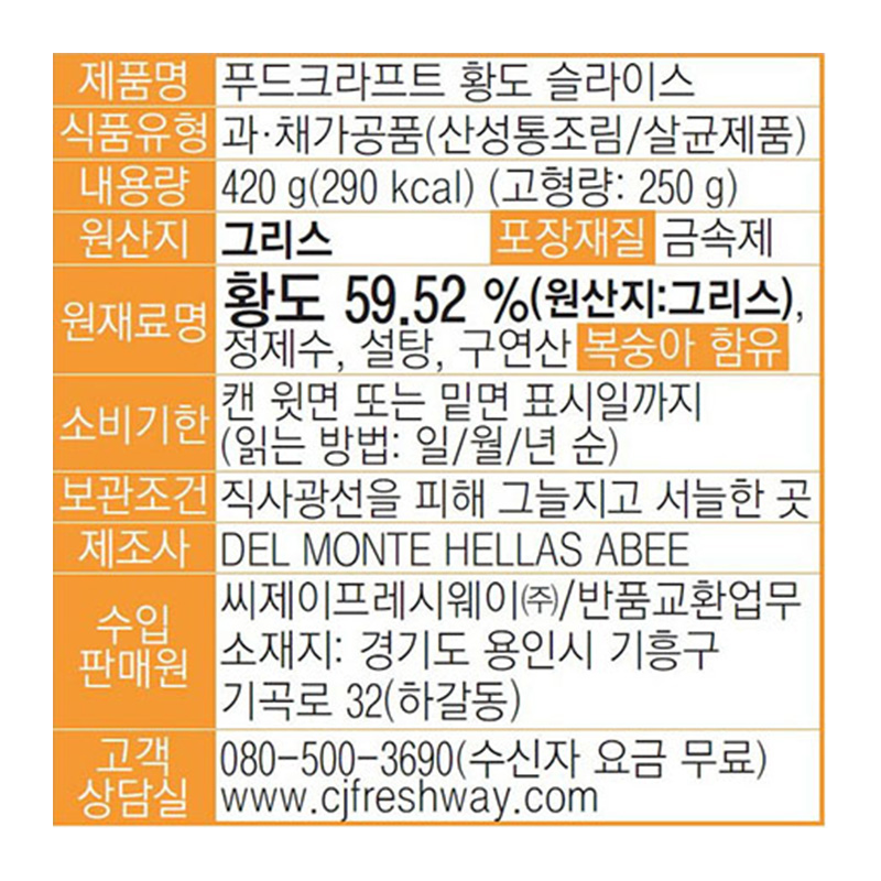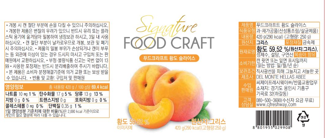 FOOD CRAFT 황도캔(직수입_시럽_슬라이스_NEW 420g/EA) 황도 황도슬라이스