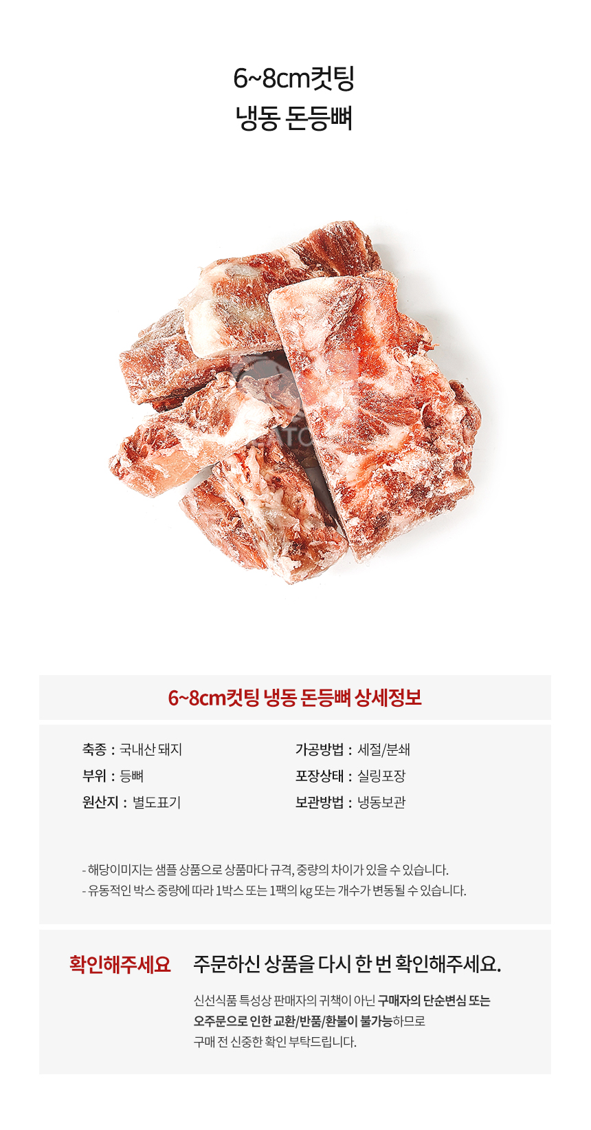 [냉동] 돼지등뼈_국내산_가공_6~8cm 감자탕용_1kg 이미지