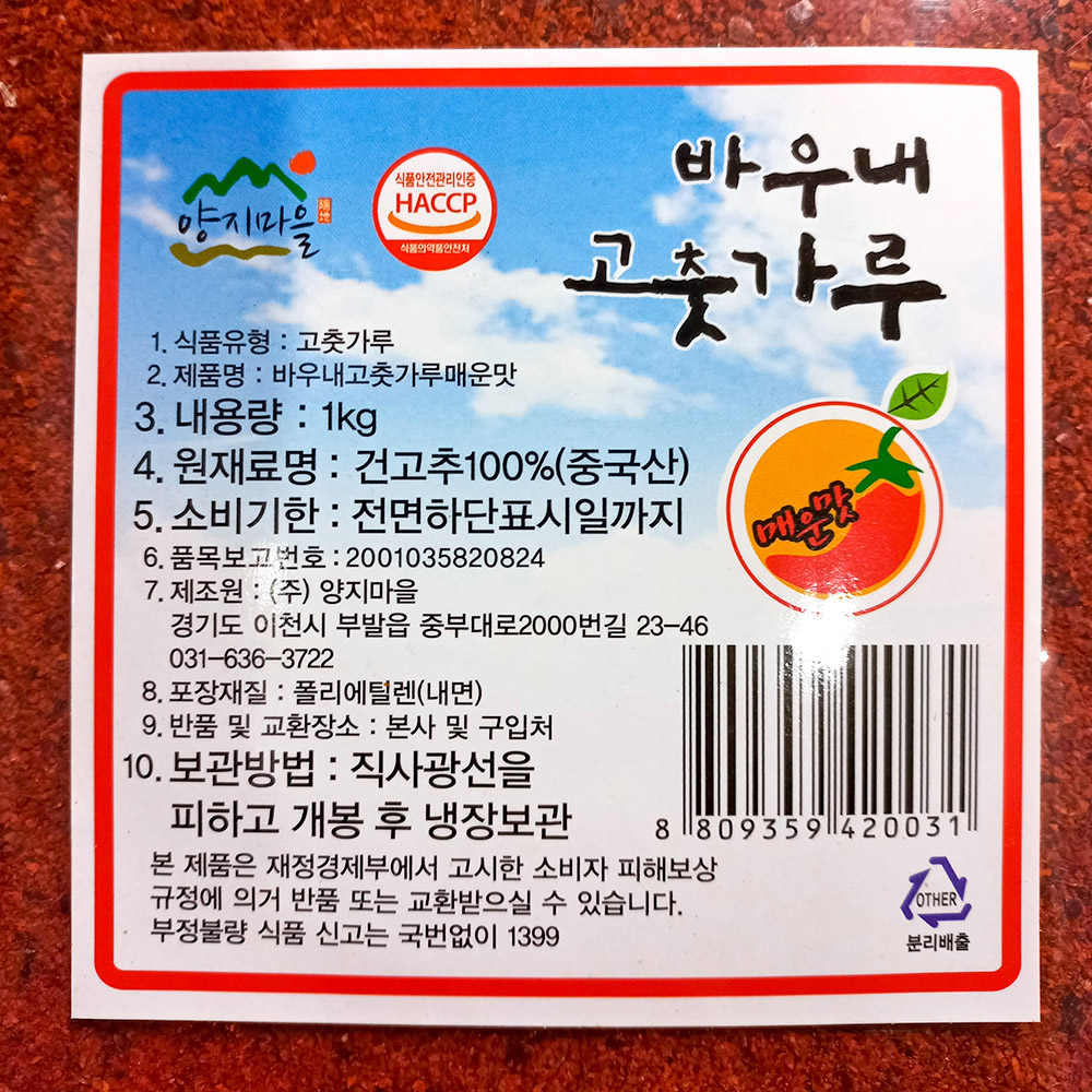 바우내 청양고춧가루 중국산 (굵은것) 1Kg