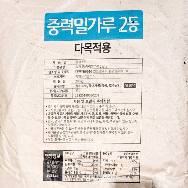 독수리표 곰표 중력 2등급 다목적 밀가루 20kg