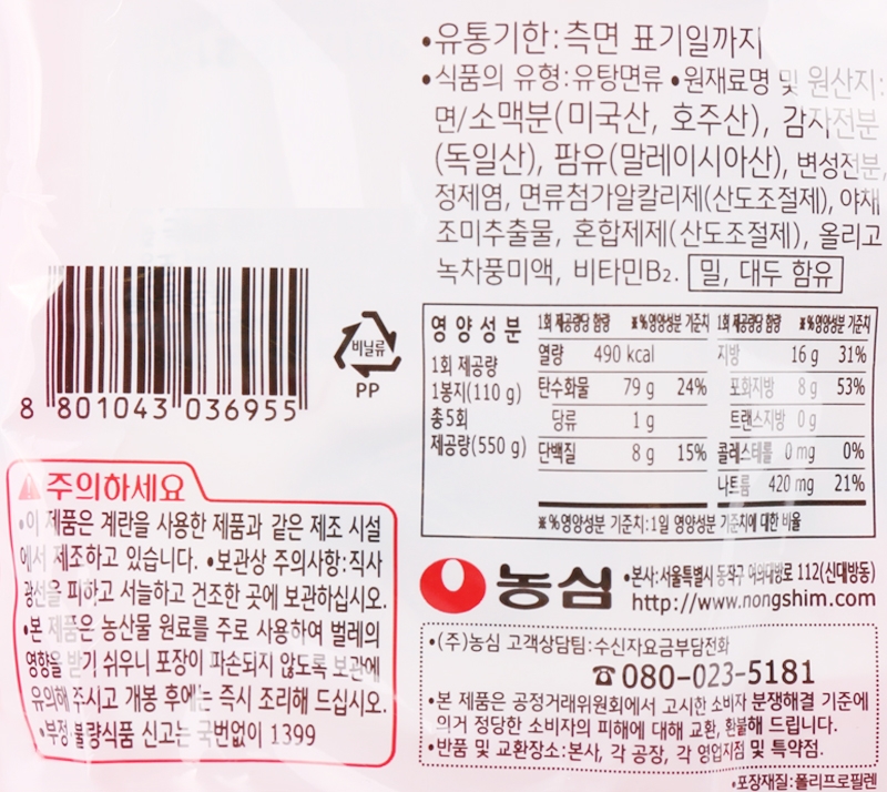 농심 사리면 110gX5입 이미지