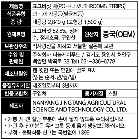 차이웰 표고버섯캔 채 2.84Kg 이미지