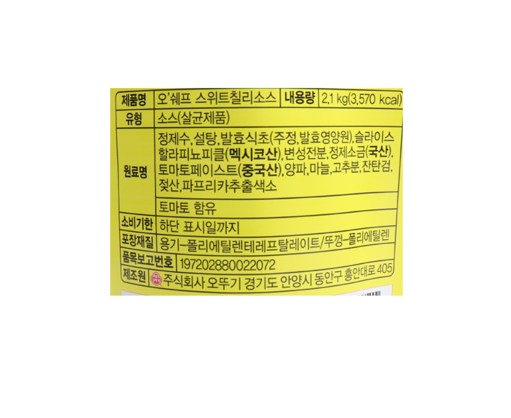 오쉐프 스위트칠리소스 2.1Kg 이미지