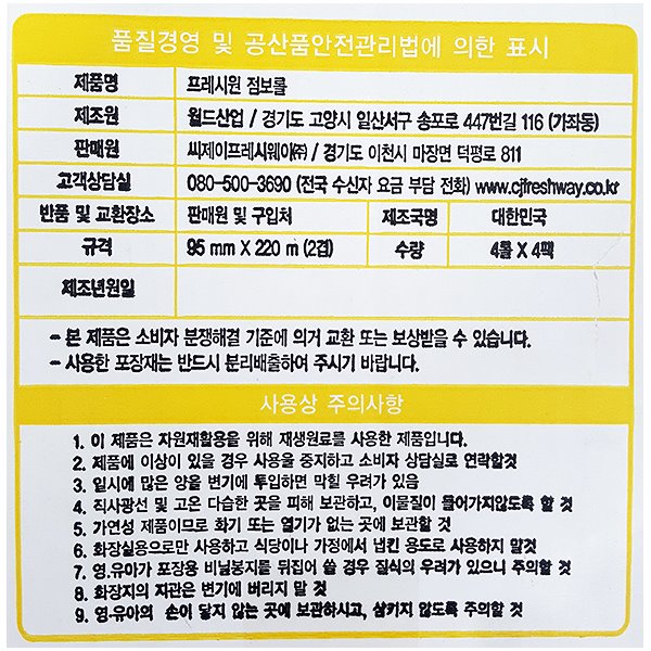 프레시원 점보롤 2겹 220m 4롤 이미지