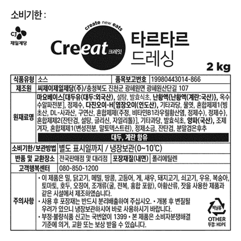 크레잇 타르타르 드레싱 2kg 냉장 이미지