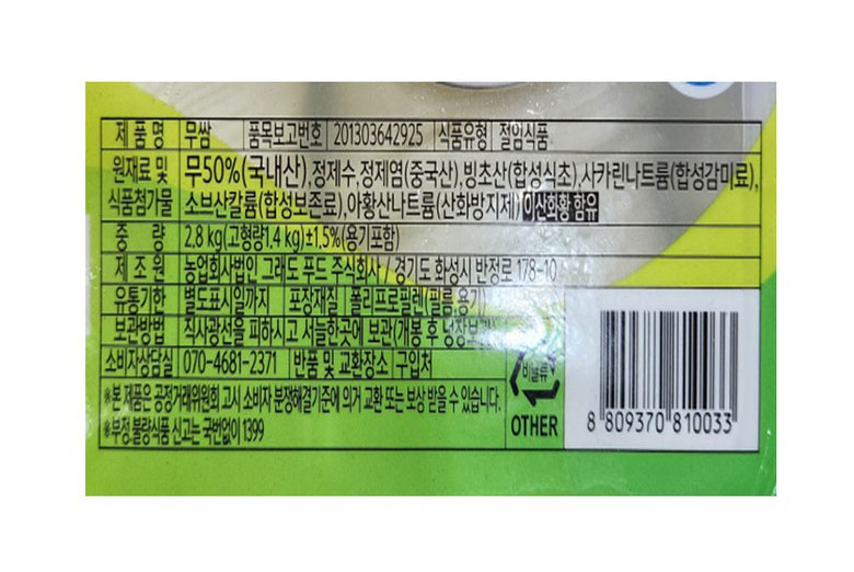 웰빙 쌈무 새콤달콤맛 2.8kg 냉장 이미지