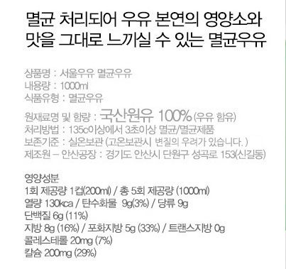 서울우유 흰우유 멸균 1L 냉장 이미지