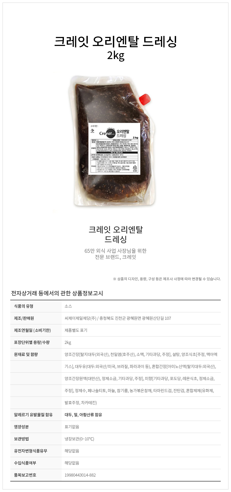 크레잇 오리엔탈 드레싱 2kg 냉장 이미지