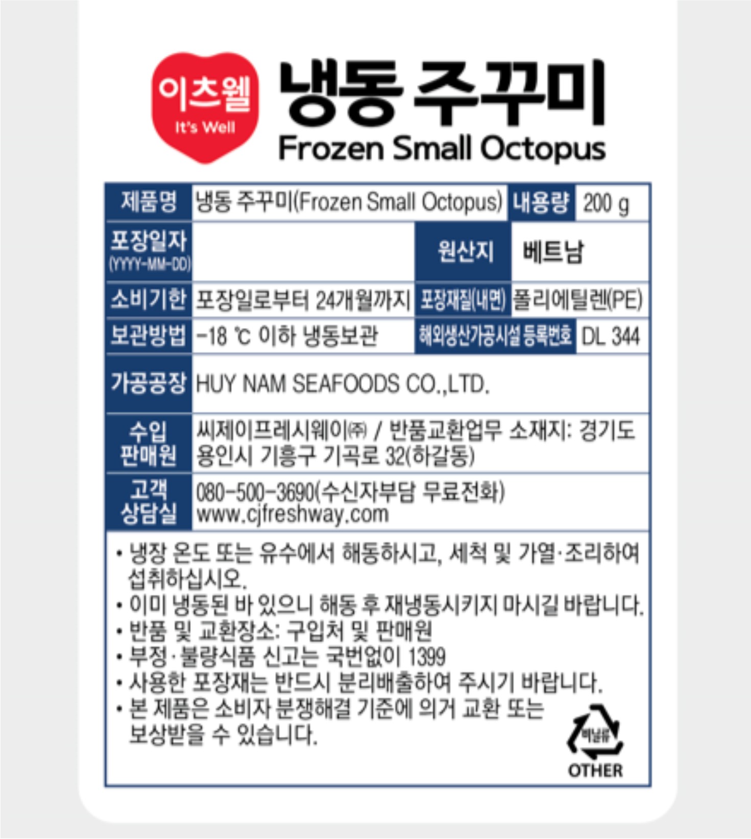 이츠웰 주꾸미 홀 8미 200g 베트남산 냉동