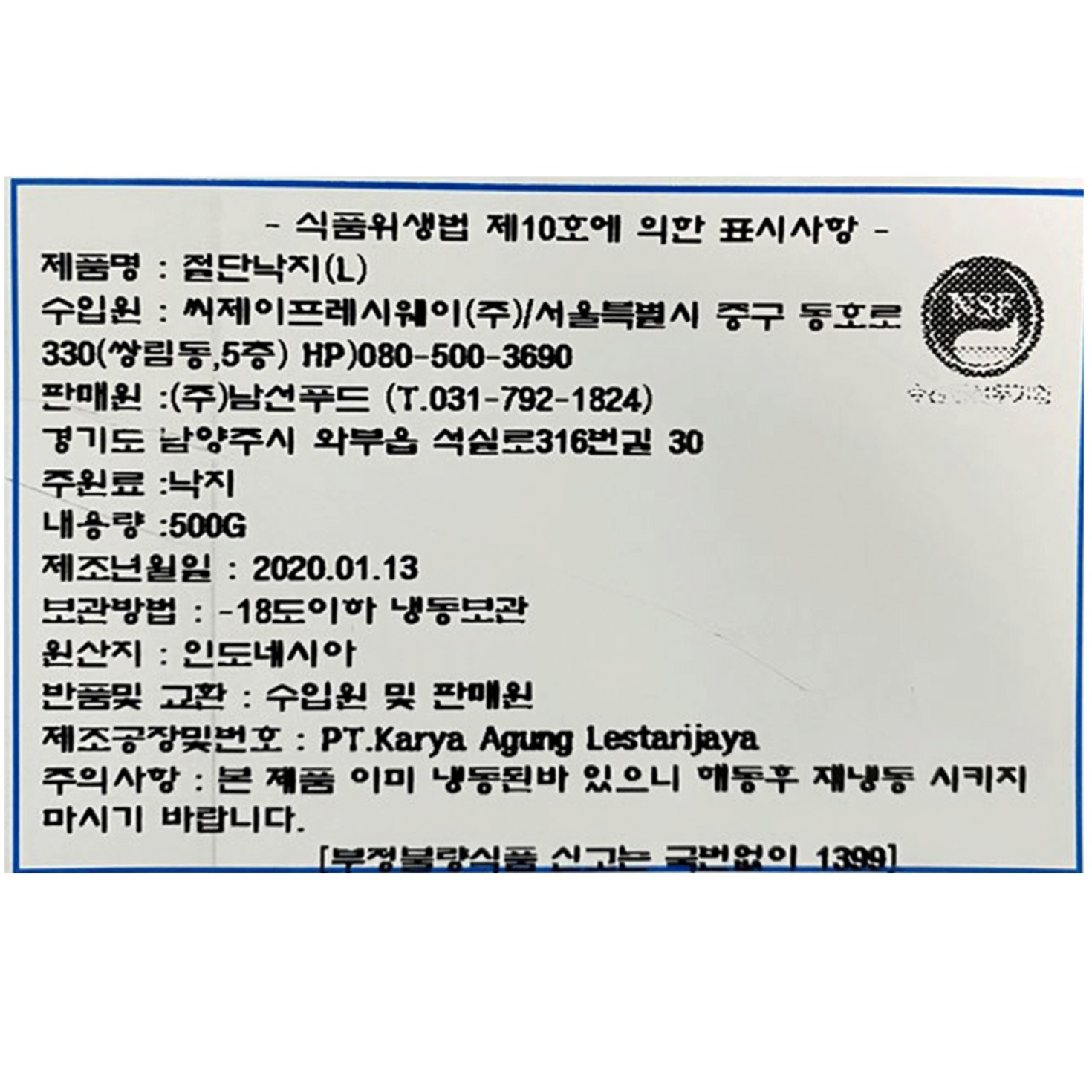 프레시원 절단낙지 L 500g 베트남산 냉동