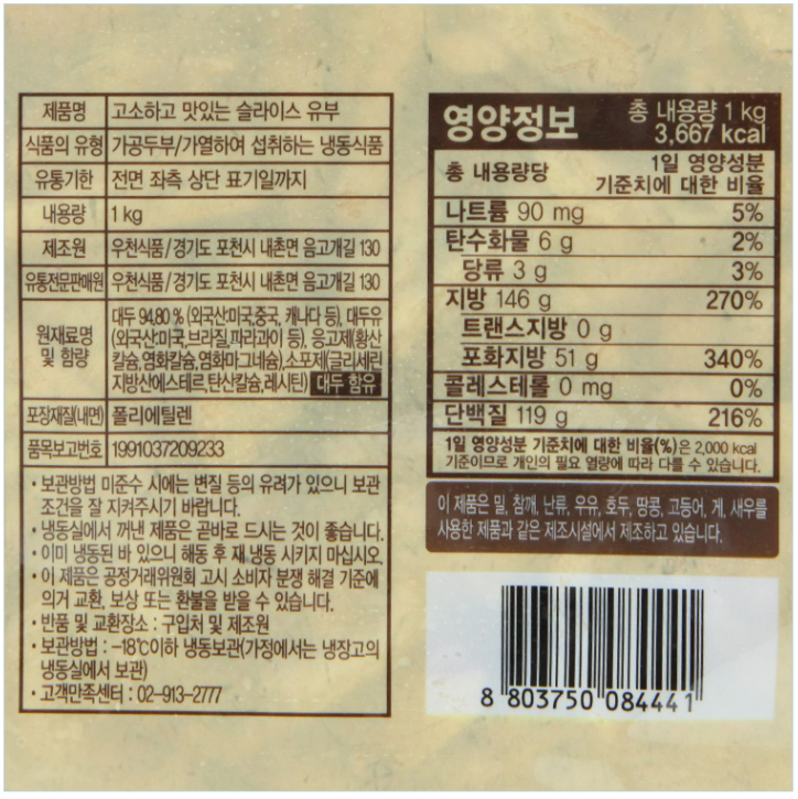 우천식품 고소하고맛있는유부 슬라이스 1Kg 냉동