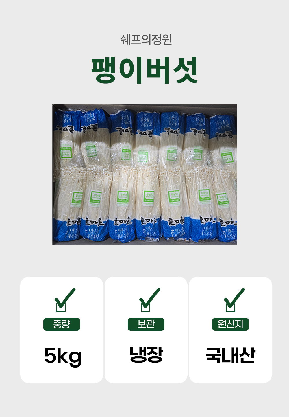 ★버섯특가★ 팽이버섯(국내산 5Kg/BOX) 34입