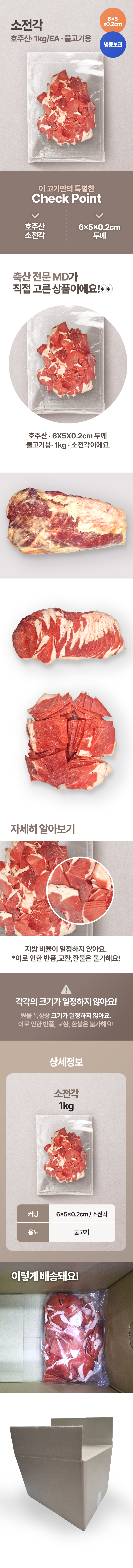 ♥정육특가♥ 소앞다리(6*5*0.2cm 1kg/EA) 불고기용 전각