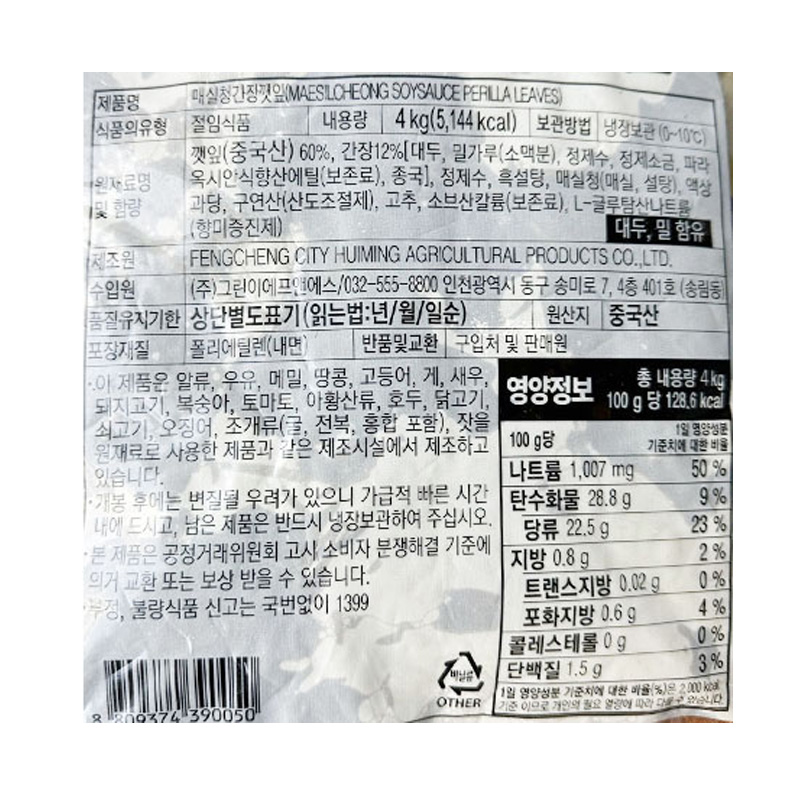 그린이에프앤에스 간장깻잎(4Kg/EA)
