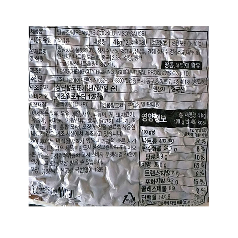 ★신규초특가★ 그린이에프앤에스 땅콩조림(기획상품 4Kg/EA) 이미지