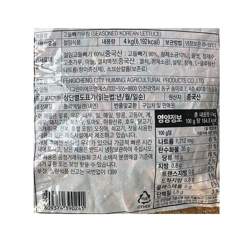 그린이에프앤에스 고들빼기무침(기획상품 4Kg/EA)