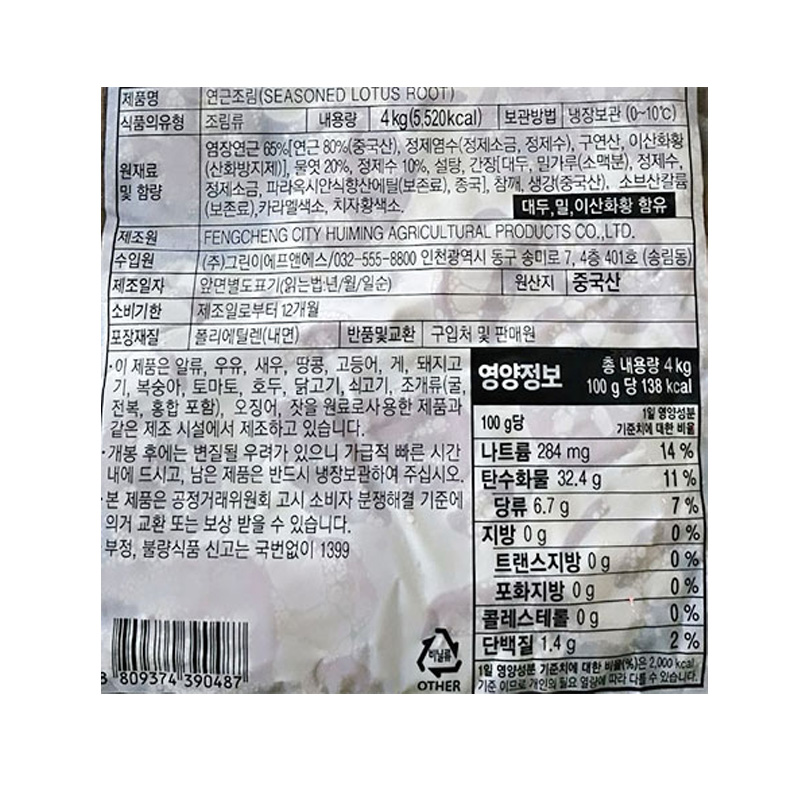 그린이에프앤에스 연근조림(기획상품 4Kg/EA)