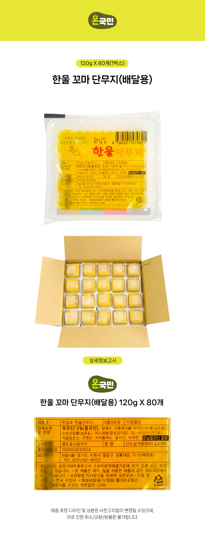 한울 꼬마 단무지(배달용) 120gX80입 1박스 이미지