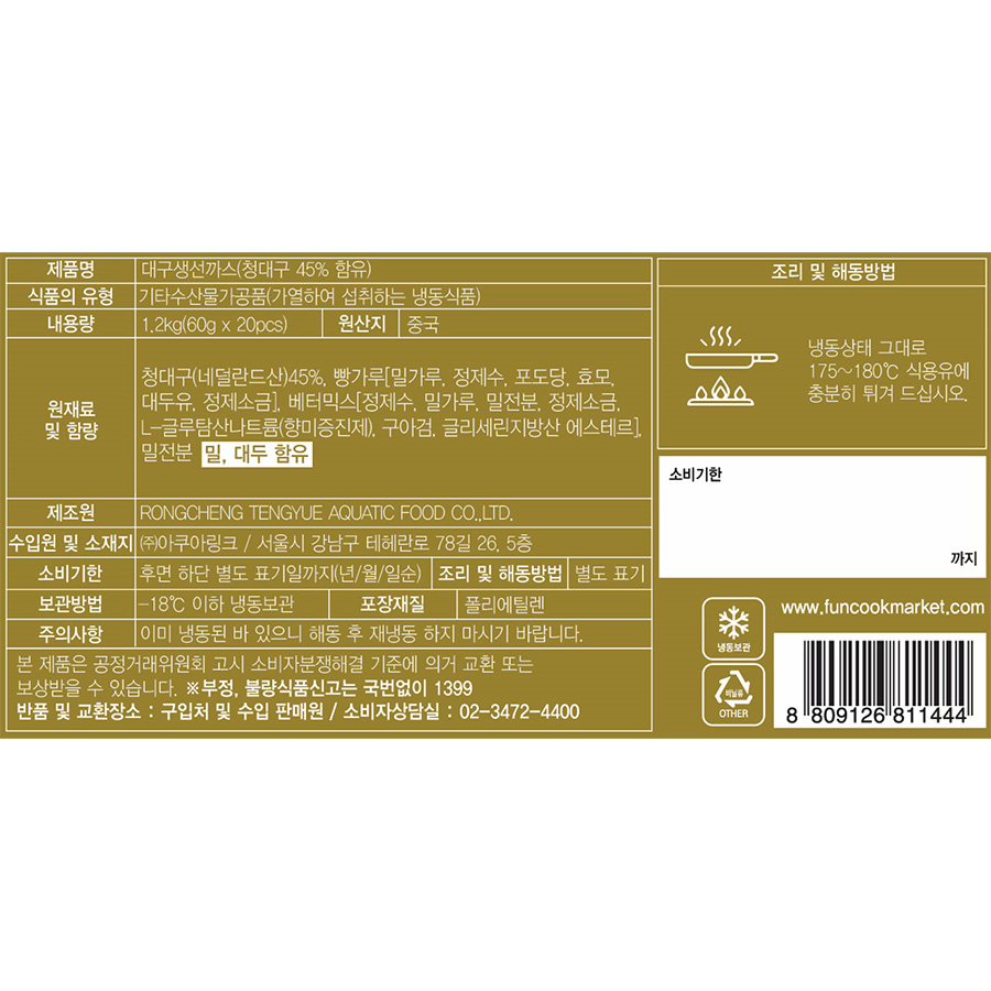 ★초특가★ 아쿠아링크 대구생선까스(60g*20입 1.2Kg/EA)