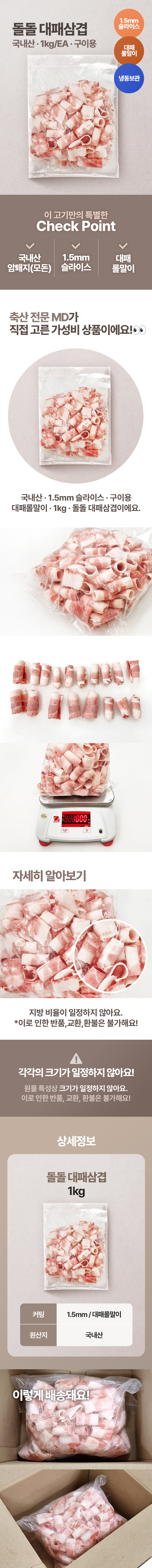 ♥정육특가♥ 국내산 대패 삼겹(1.5mm 롤말이 1kg/EA) 구이용