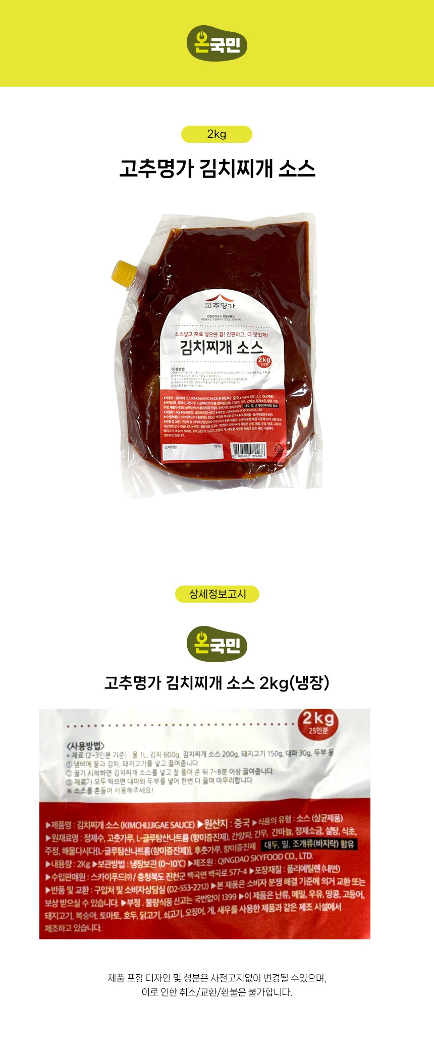 고추명가 김치찌개 소스 2kg