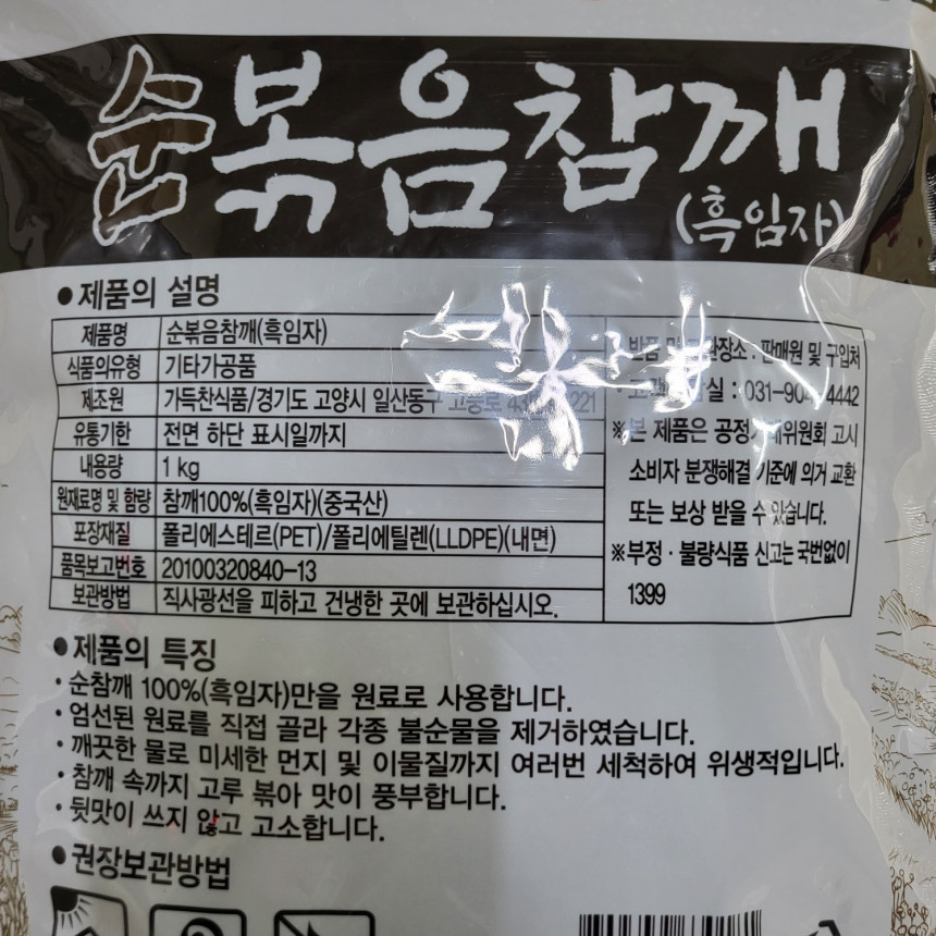 ▶ 가득찬 순볶음참깨(흑임자) 1kg
