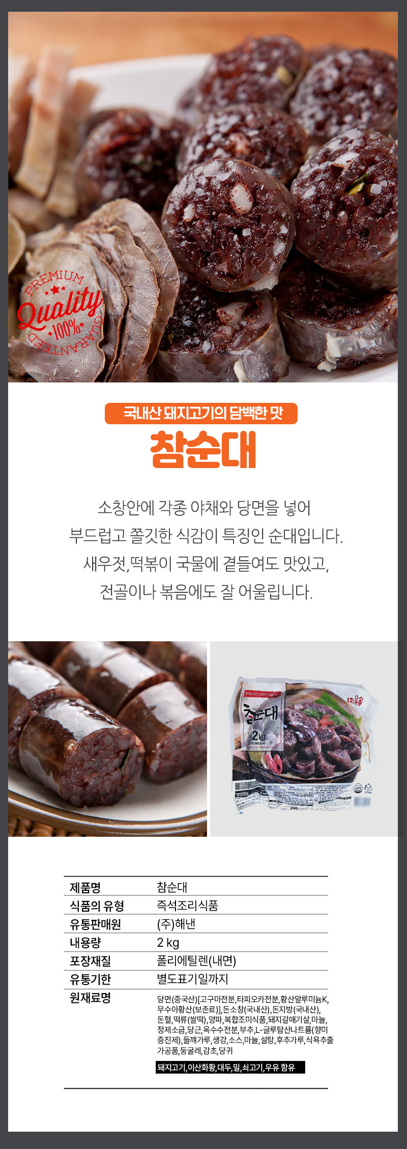 간단설명 : 돼지 갈매기살이 들어가 더 깊고 풍부한 맛의 찰순대