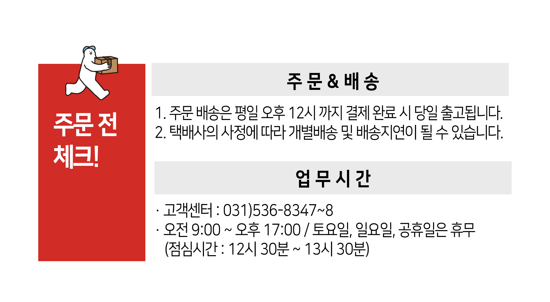 • 택배배송의 경우, 주말 및 공휴일 전일 및 당일에는 상품 발송이 어려울 수 있습니다.